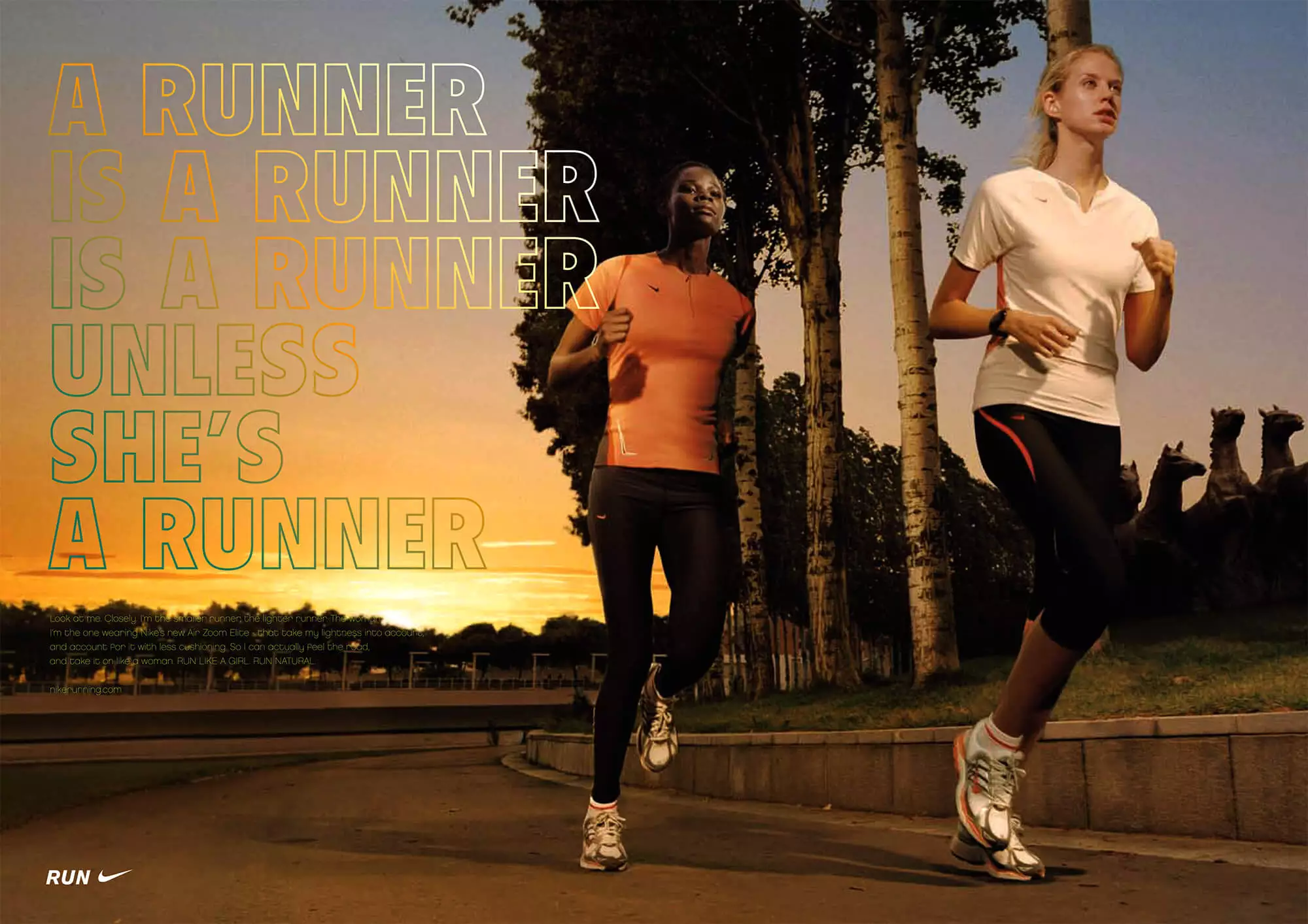 Women’s running campaign. The new Nike Air Zoom Elite and apparel is specially shaped for women, as women have a different body shape and therefore run differently.
